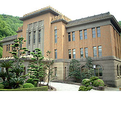 スクラッチタイル貼りの役所建築。 石造り風の1階部とタイル貼りの2・3階部で、地味目な組合せながら外観にアクセントを与えています。 車寄せや屋上に突起状の装飾があります。 玄関などの中央部と両翼部が、市街地から少し離れた県立文化の森公園内に平成2年に移築されました。 東京の震災復興小学校などを手掛けた佐野利器の設計。 | ||||