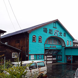 洋風の外観を持った現役の映画館。 切妻屋根の軒下から少し入ったところにモギリがあるという、脇町劇場と似た演劇場形式の映画館ですが、大きなアーチが特徴的です。 鮮やかな緑色に塗られた横羽目板は正面だけで、側面は柿渋染のような和風の雰囲気です。 館内は2階建てで、1階部分は固定椅子ながら、2階には演劇場の流れをくむ桟敷席があるそうです。 | ||||
