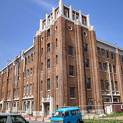 辰野式レンガ造の銀行建築。 角に尖塔を戴き、アーチ開口の出入口を設けたほか、2階のアーチ窓周りには要石状に花崗岩を配しています。 戦後は大林組神戸支店として使われ、震災被害を受けて外壁を残して地下鉄駅入口に使われた後、マンション低層階の外壁として活用されました。 HP | ||||