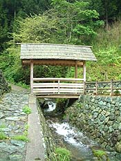 龍王橋とふれあい橋の間にあるふるさとの宿で、「浪漫八橋」という橋のパンフレットを配っていますが、豊年橋は個人宅の軒の間を入っていくため、龍神橋は支流に架かっているため、なかなか見つけづらいです。 |