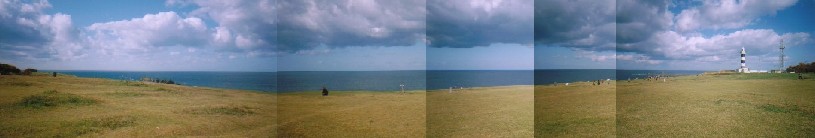 入道崎は、秋田県の男鹿(おが)半島の突端の岬で、日本には断崖絶壁の岬が多い中、芝が広がって広々している岬です。 芝生の先は20〜30mの断崖ですが・・・。 秋田へ異動になる前から好きでしたが、秋田にいたときはドライブがてらちょくちょく行っていました。 油断してお弁当を食べていると、背後からトンビが弁当を狙っているかも(私の頭上をかすめて行った)。 またちょうど西を向いているので、夕焼けも見事です。 三方五湖と同様に、曇や雨の日には行かないでください。 |