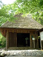 (徳島県・祖谷地方) 祖谷地方は山深く、平家の落人の里でもありました。 暖かい四国では、囲炉裏が部屋の中にあるのは珍しく、比較的寒い祖谷地方の特徴とか。 また右側の建物は隠居屋で、主が隠居して長男に家督を譲ると移ったようで、年老いても出入しやすいように、床面が低くなっています。 |