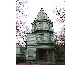 食堂(レストラン)の玄関兼階段室として建てられた八角形の望楼で、富士山の眺めがいいことから名付けられたようです。 外観とは裏腹に内部は畳張りで、靴を脱いで上がる構造。 本来は食事をする本館部分があったようですが、広見公園内への移築にあたり、望楼部分のみが保存されています。 1階の扉は開いていますが、中に上がることはできません。 HP | ||||